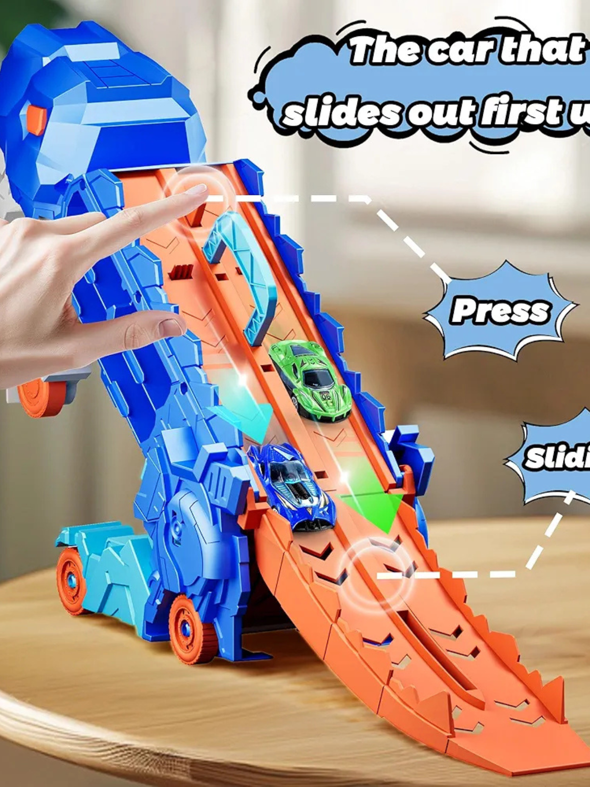 Dinosaur Car Eating Monster Truck With 8 Racing Car