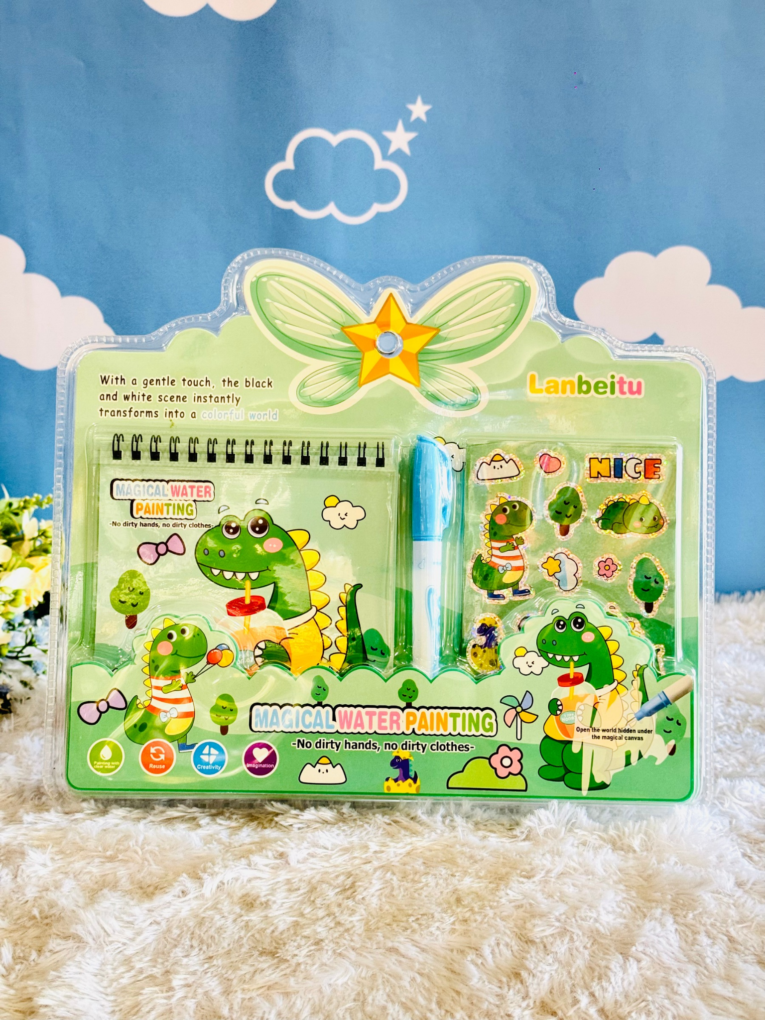 Discover the wonder of mess-free creativity with our Magical Water Painting Kit. Perfect for young artists, this innovative set lets children paint vibrant pictures using only water—no messy paints or stains to worry about. Simply fill the magical brush with water and watch colors bloom across specially designed pages. Includes multiple reusable painting boards, water-filled brushes, and a variety of colorful designs to explore. Ideal for developing fine motor skills and artistic expression while keeping hands and clothes clean. Hours of imaginative fun for children aged 3 and up.